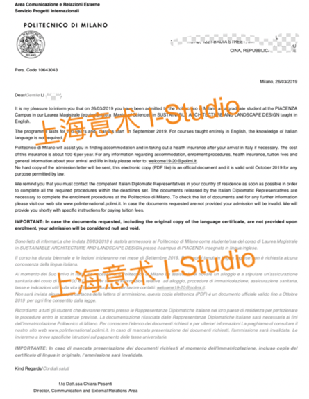 錄取院校:米蘭理工大學
