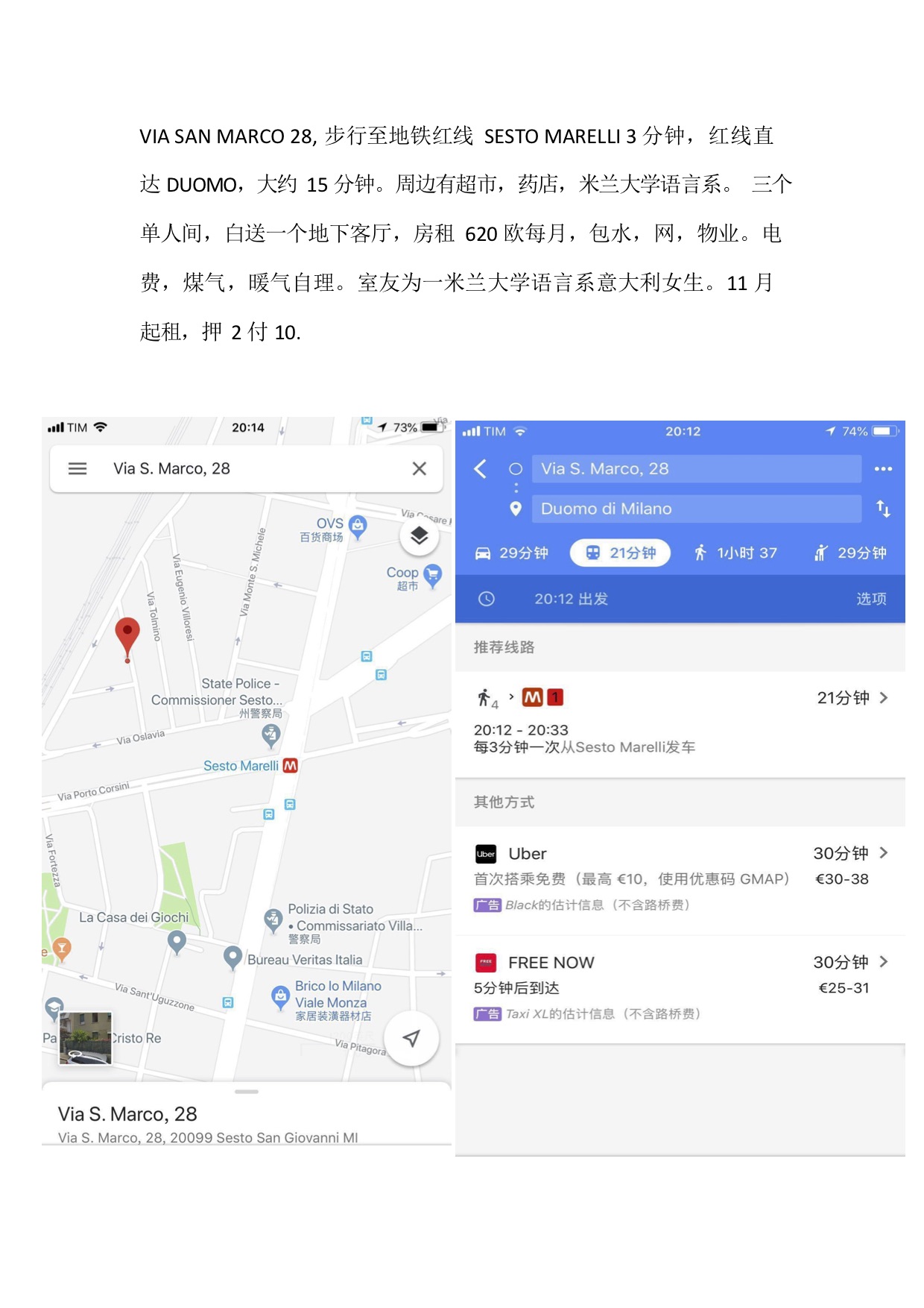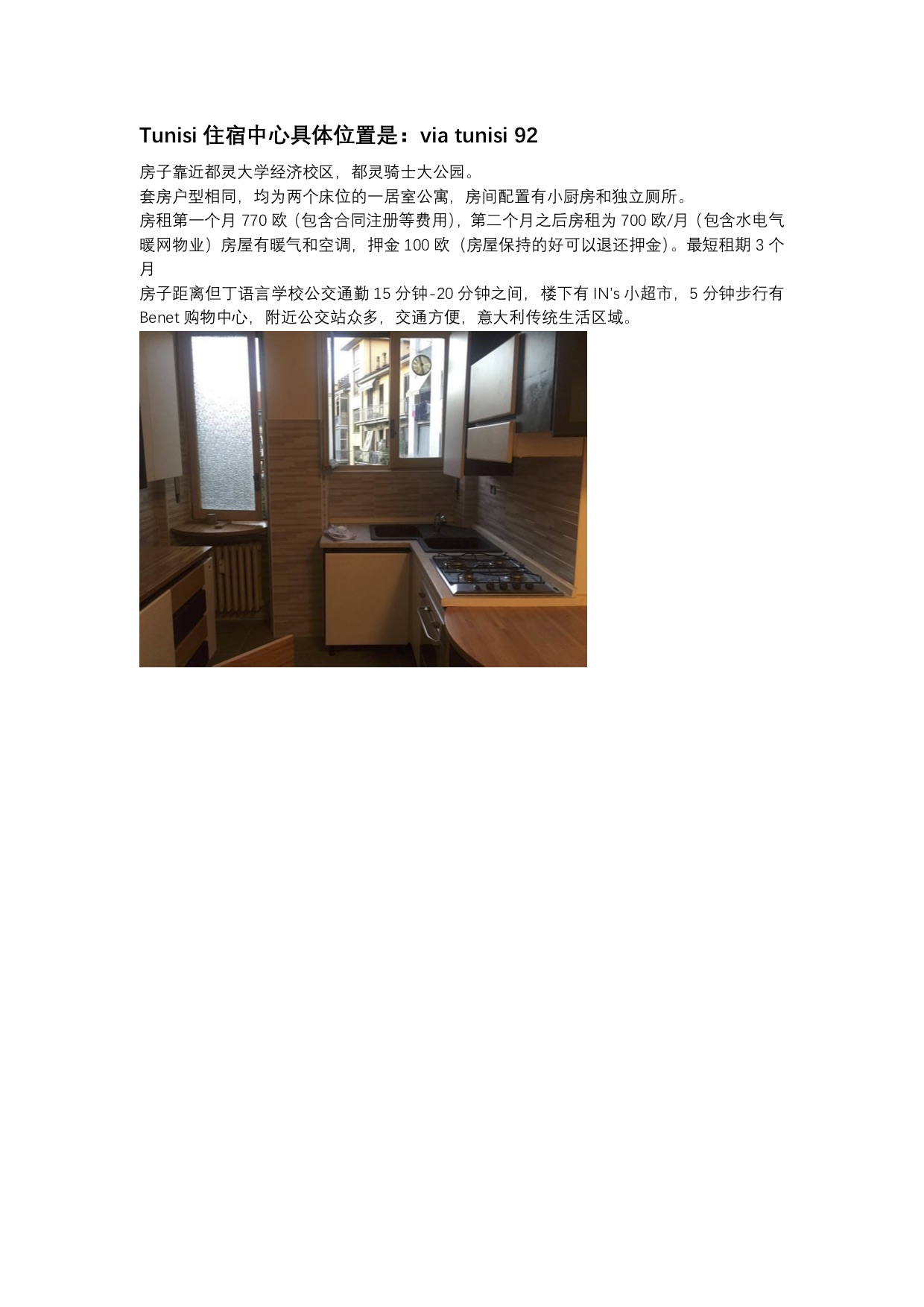 1號(hào)單間 11月起租,新裝的空調(diào)/暖氣 意大利房東人超好,離polimoda步行十分鐘 樓下有公交車,Della chiesa 51,離火車站/市中心/中國街步行15mins,樓下有conad 家樂福,410歐/月, 押一付一