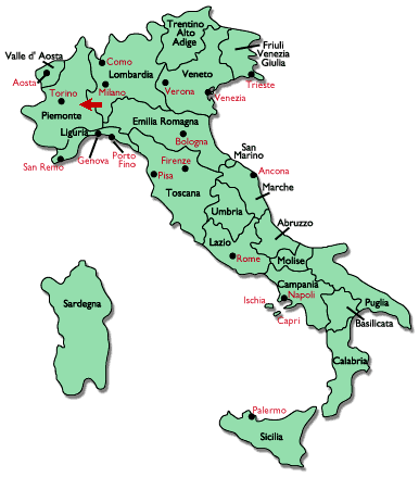 L’Italia è divisa in 20 regioni: Valle d’Aosta, Piemonte, Lombardia, Veneto Trentino-Alto-Adige, Friuli-Venezia-Giulia, Liguria, Emilia Romagna Toscana, Umbria, Marche, Lazio, Abruzzo, Molise, Campania, Basilicata, Calabria, Puglia, Sicilia e Sardegna.