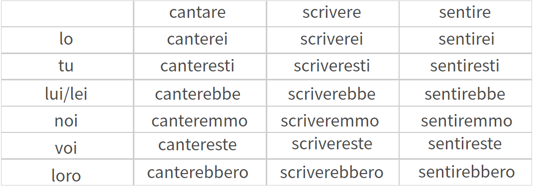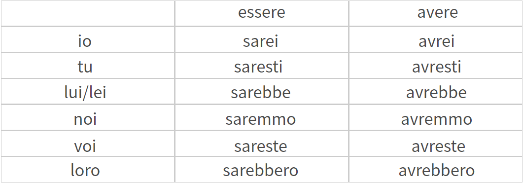 avere 和 essere 的條件式變位。