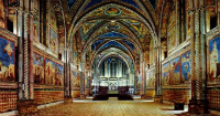 下午前往距佩魯賈約30公里的圣城—【阿西西】。這里被稱為圣城是因?yàn)樘熘鹘痰氖ト耸シ綕?jì)各曾在這里生活并傳教,而此地的圣方濟(jì)各教堂以及遺跡都被聯(lián)合國教科文組織列為世界文化遺產(chǎn),尤其值得一提的是教堂穹頂壁畫是有著“歐洲繪畫之父”喬托的真跡。